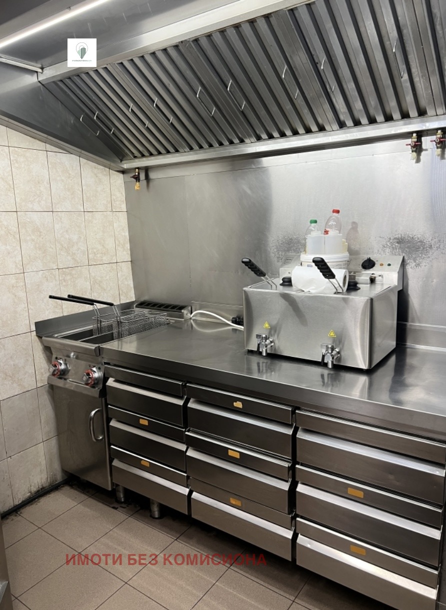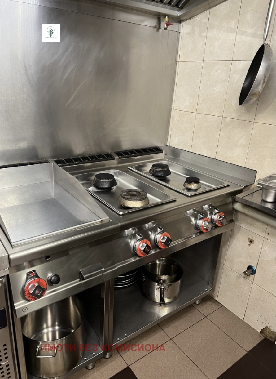 2 работни маси , 1 конвектомат Convoterm , 1 бърза фурна на UNOX SPEED PRO , 4 фритюрника , 4 котлона на метан ( обекта е с изградена метан станция 300 кубика ) с абсолютно всички защити и документи,