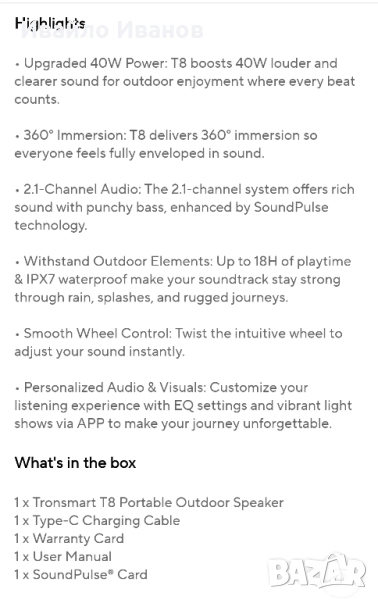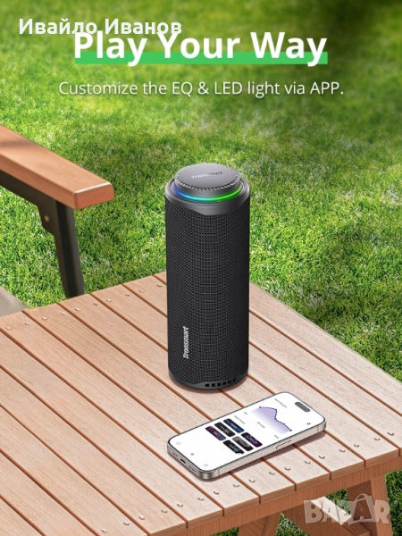 APP контрол: Персонализиране на звука (EQ настройки) и светлинните ефекти чрез приложението на Tronsmart.