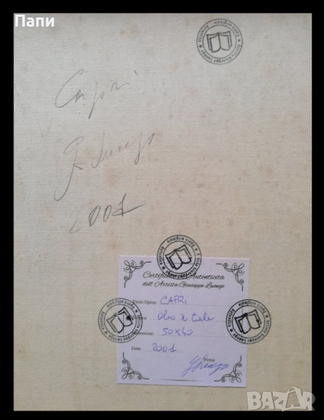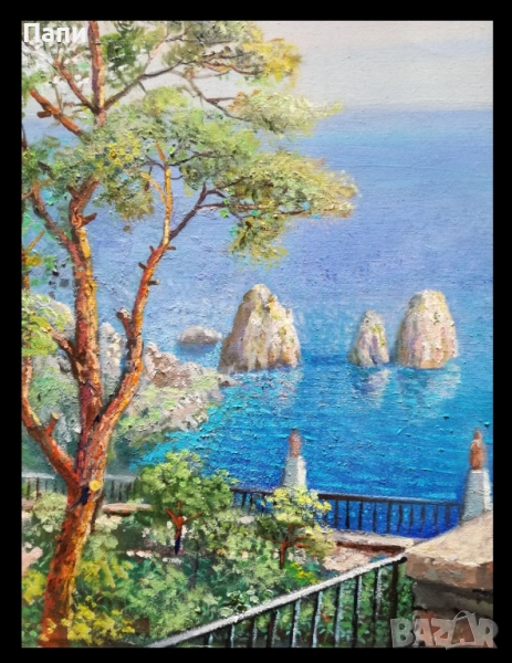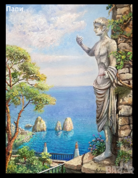 Картината е на майстор Джузепе Луонго,неаполитански художник роден 1948. Отличният и деликатен живописен почерк на художника е очевиден,използвайки ярки и хармонични цветове. Размери: В/ 50 см. Ш/40 см.
