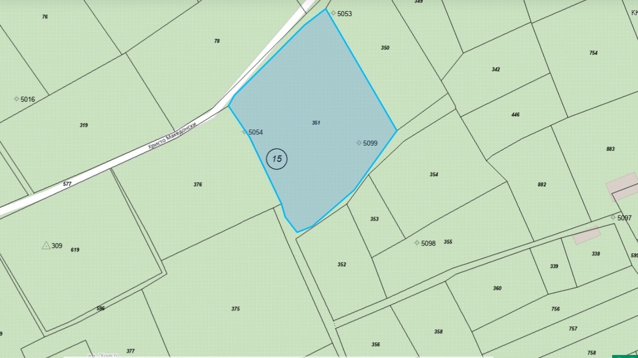 Продава поземлен имот с площ 4477 кв.м., намиращ се в гр. Русе, вилна зона Кръста. Имотът се намира южно от бул. България и граничи с ул. Христо Македонски.