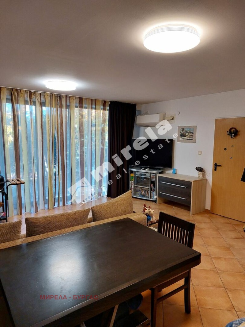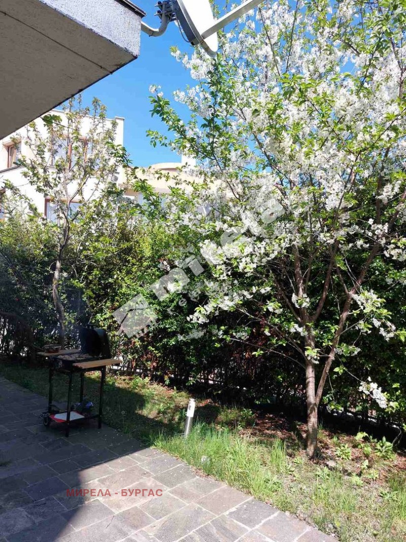 Имотът е разположен на партерен етаж, с директен достъп до двора. Състои се от антре, дневна с кухня, три спални, мокро помещение и тераса с гледка към морето.
