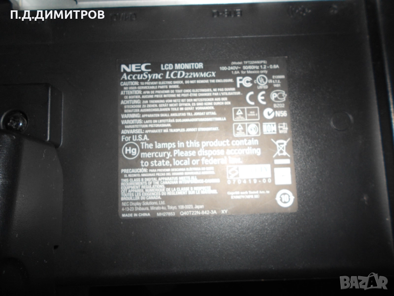 Монитор лсд NEC model TFT22W90PS