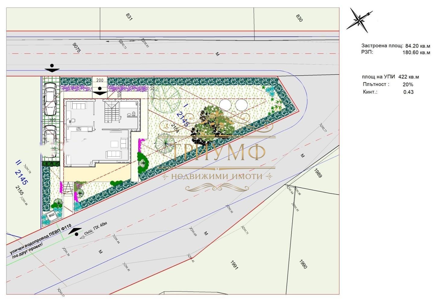 🌿 Двор: 422 кв.м, ъглов - лице на две улици!