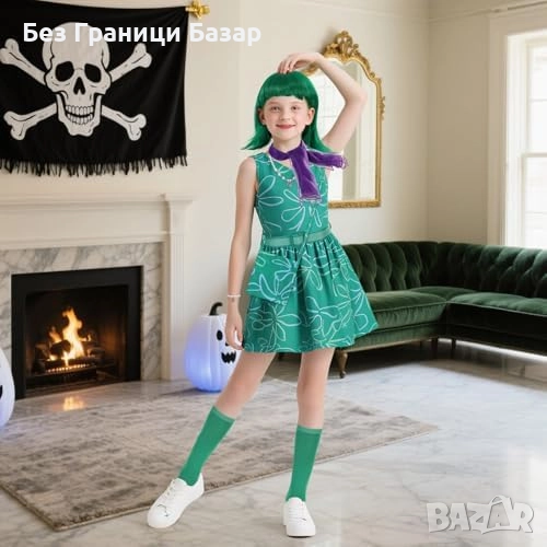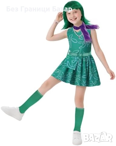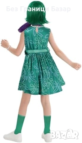 Нов Детски карнавален костюм Disgust Inside Out – рокля с перука 9 части