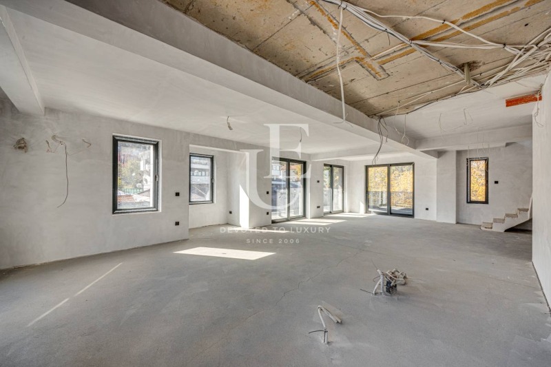 Unique Estates предлага за продажба просторен мезонет с акт 16, разположен в един от най-предпочитаните квартали на София Бояна. Имотът е с площ от 274 кв.м и се отличава с функционално разпределение, светли помещения и панорамни гледки към Витоша и града. Изложението е юг, изток и запад, което осигурява естествена светлина през целия ден. Мезонетът разполага с четири спални, просторна дневна с кухненски бокс и трапезария, няколко санитарни помещения и тераси с изключителни гледки. Отоплението е подово на газ, а във всички помещения са изградени изводи за климатици. Сградата е модерна, с отлични общи части и контролиран достъп, осигуряваща комфорт и спокойствие в непосредствена близост до природата. Имотът съчетава лукс, простор и уют, подходящ за семейства, търсещи висок стандарт на живот в един от най-зелените райони на столицата.