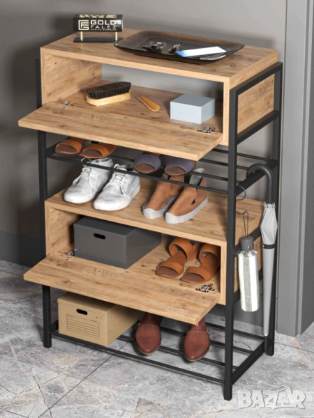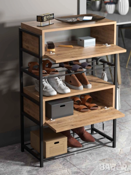 Комбинирайки елегантния вид на дърво с устойчивостта на метал, тази етажерка за обувки е едновременно практична и модерна. Подходяща е за антре, коридор или гардеробна, като осигурява място за съхранение и защита от прах.