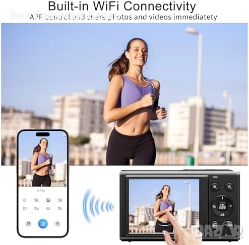 Нова Цифрова камера 5K 80MP с 18X зуум карта памет 32GB черна за влог