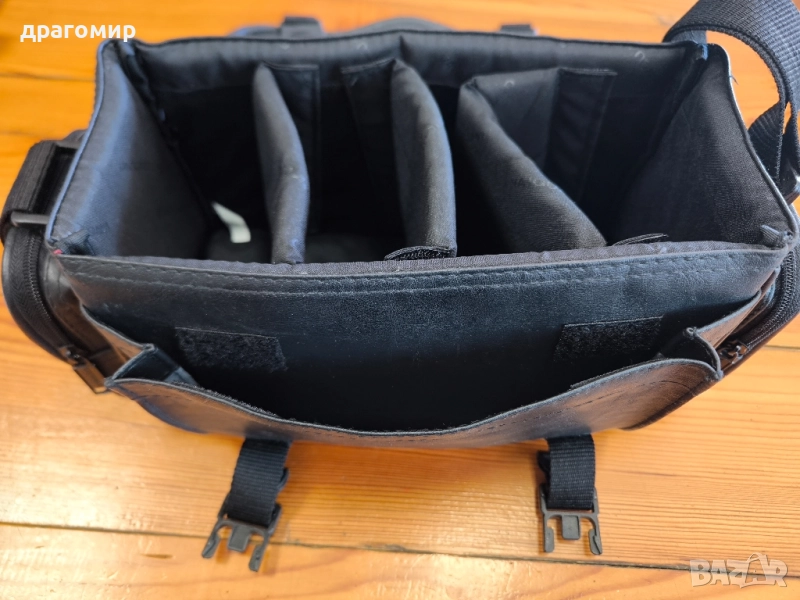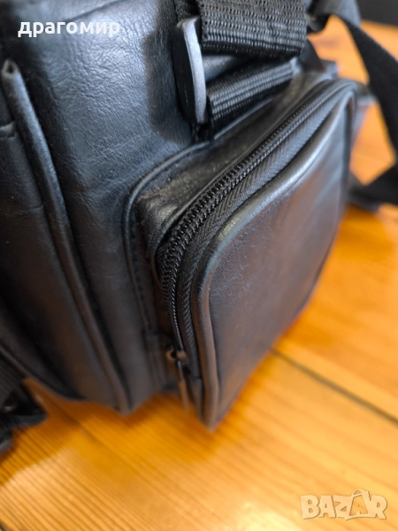 продавам кожена фотографска чанта, неразличима от нова,с два странични външни джоба и един отпред , с вътрешни размери 27/12/16 см, имам още много други фотоапарати, камери, обективи, чанти, светкавици, батерии, зарядни устройства, касети, филтри, ремъци, ленти, при закупуване на повече неща отстъпка