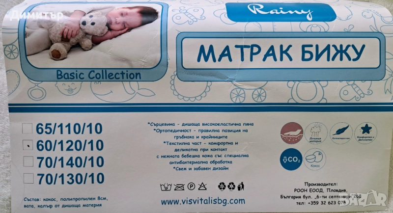 Матрак двулицев с кокос и сваляем протектор 60 лв