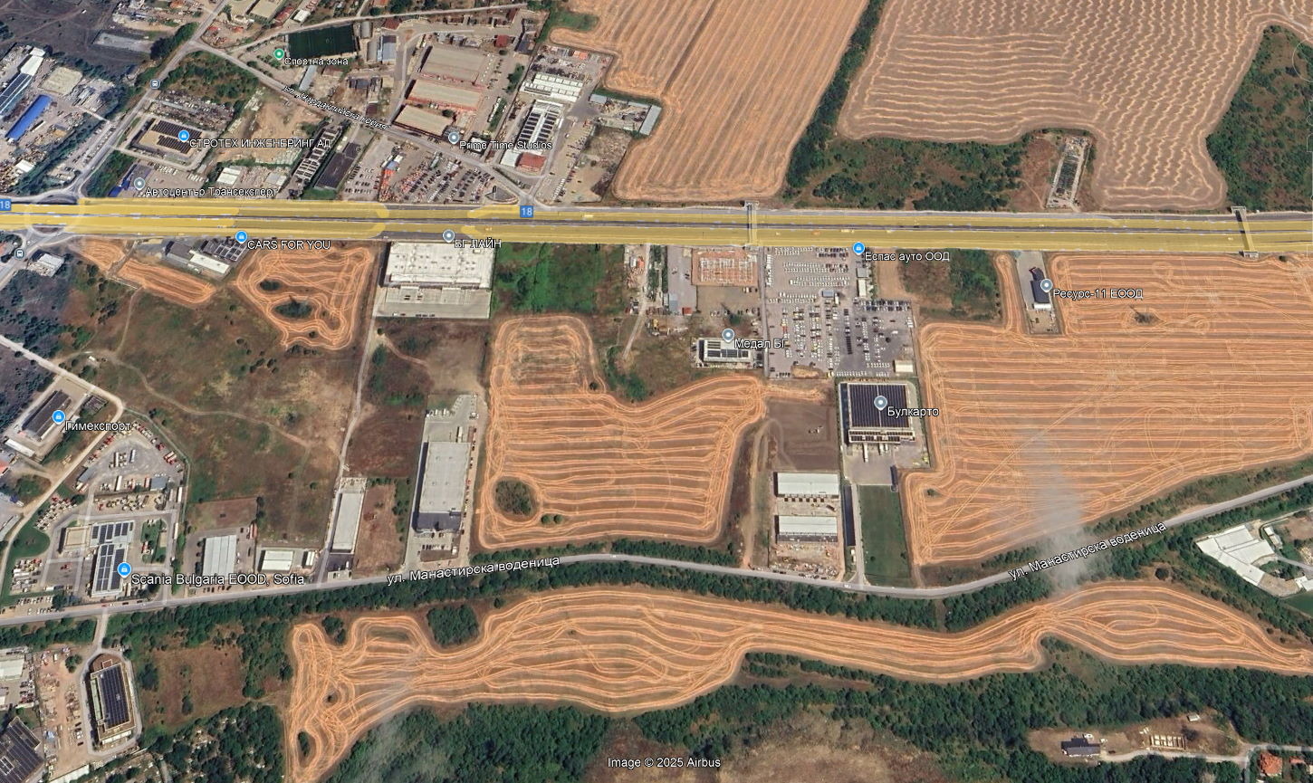 Имота е между ул.'манастирска воденица' и 'Околовръстен пат', попада в зона Смф2, кинт -1,2; плътност 40/60%. Равен, подходящ за склад, офис сграда от смесен тип.