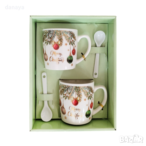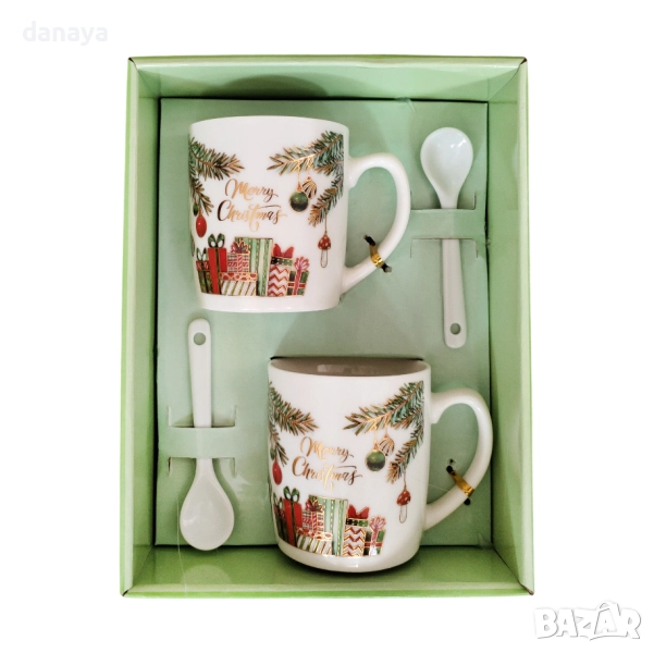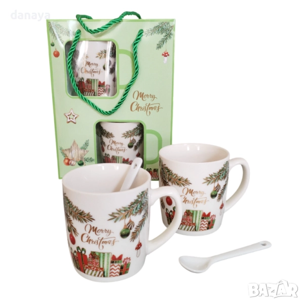 Комплект коледни чаши с лъжички в подаръчна кутия – Merry Christmas