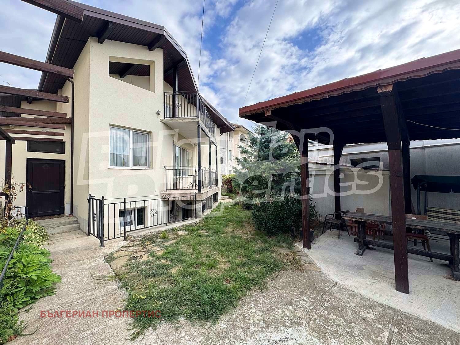 В двора има зелени площи, цветя, беседка с барбекю зона и място за паркиране идеално за отдих.