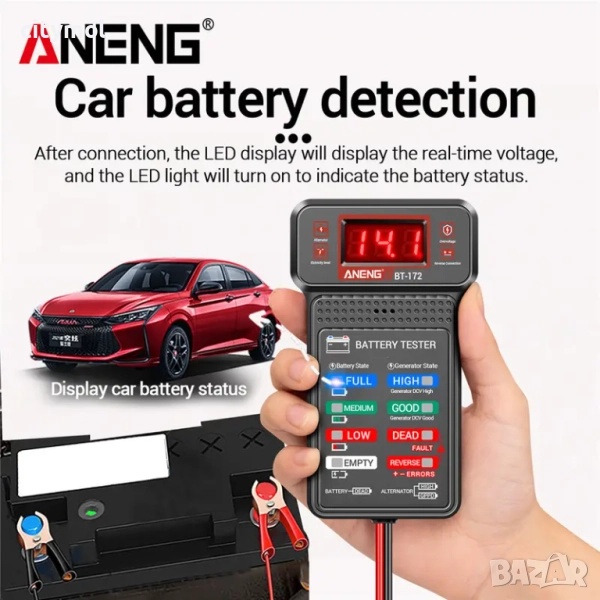 Тестерът за автомобилни акумулатори ANENG BT172 е многофункционален тестер за батерии, подходящ за тестване на 12Vакумулатори.