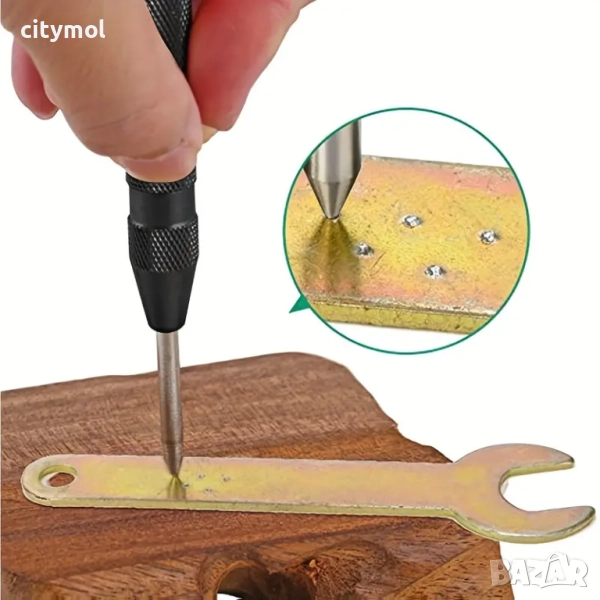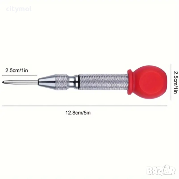 - Джобният автоматичен центриращ уред има дълбоко набразден захват за лесно боравене и по-добър контрол; удобната капачка, която не прищипва, осигурява добра омекотяваща защита за дланта ви срещу пружинен удар.