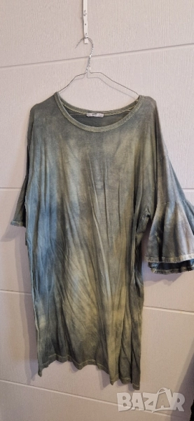 Дамска къса рокля с къс ръкав ЗАРА тип туника размер: М/Л материя: памук цвят: тъмно зелена прикрива → Обява 52155697