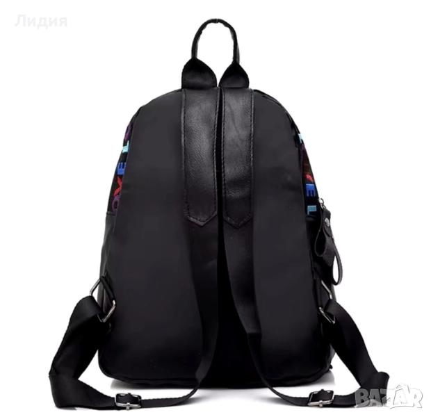 Модерна черна раница с надпис "LOVE" и ключодържател мече → Обява 52155721
