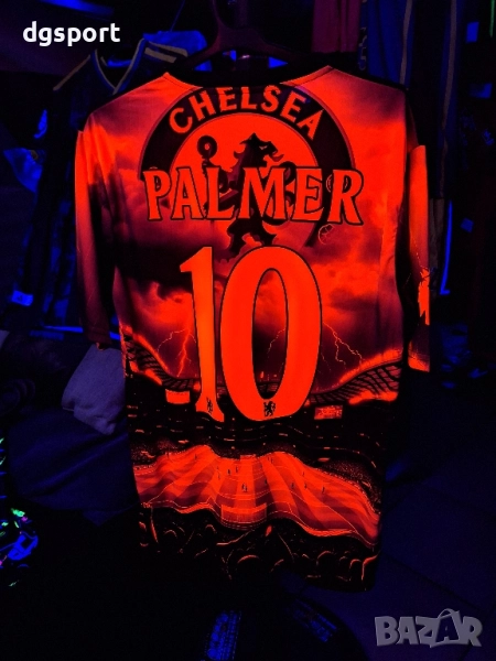 Флуоресцентна футболна фланелка на ЧЕЛСИ!Специално издание Коул Палмър!Екипът е флуоресцентен под ултра виолетова светлина. Бродирани емблеми на клуба и марката.Име на футболист и номер принтирани директно върху плата.Налични размери XS,S,M, L и XL .Доставка със Еконт или Спиди, опция преглед и тест.