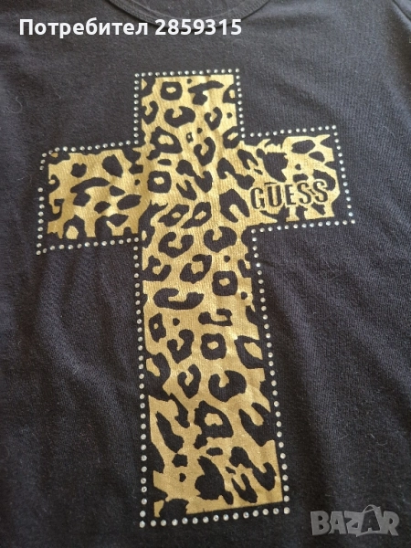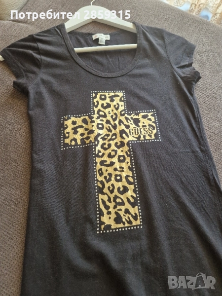 Дамска тениска от марката Guess в черен цвят с златисти детайли и камъчета. Чисто нова, изпрана и със свалени етикети. Никога не е носена. Размер S - отговаря си на размера. Купена за 116 лв, но тъй като е изпрана и със свалени етикети, я продавам на доста по-ниска цена.