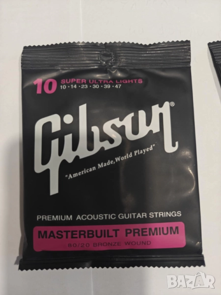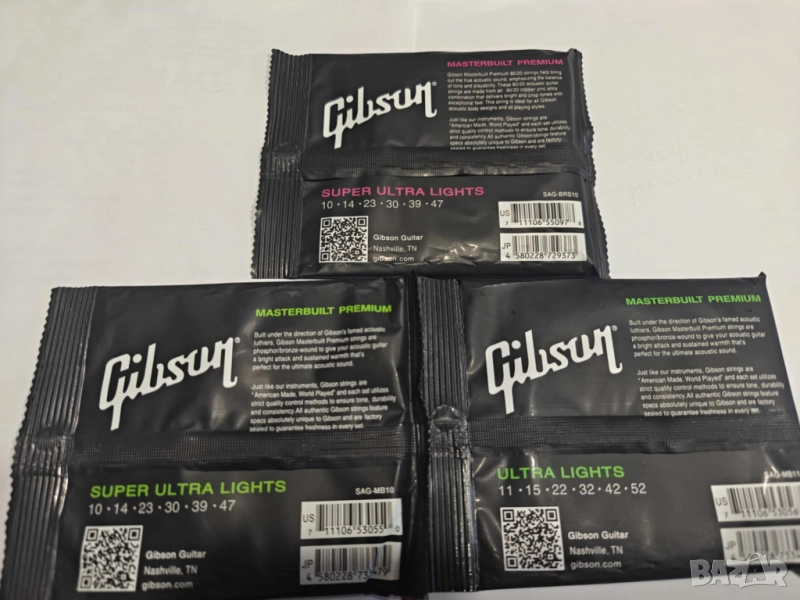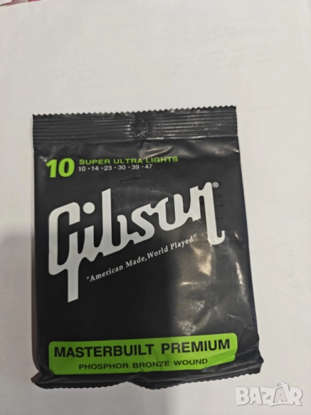 а.) Gibson Masterbuilt Premium Phosphor Bronze-размер Super Ultra Lights10-47,или така наречени от мен-зелени десетки