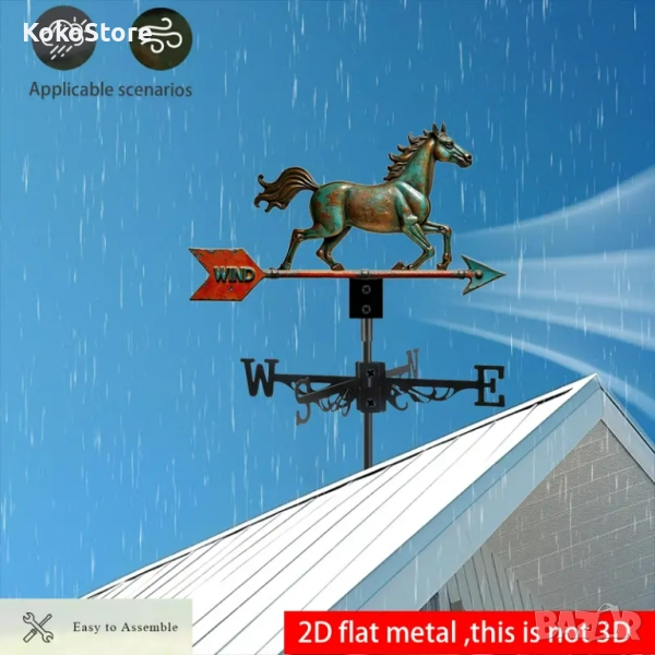 - издръжлив на метеорологични условия и служи не само за посочване посоката на вятъра, но и като градинска декорация за балконът или градината Ви.