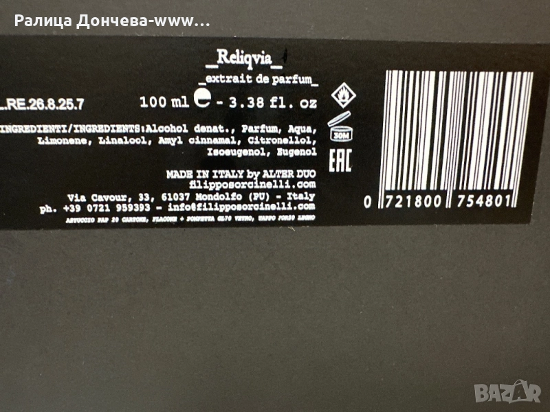 Нишова Арт парфюмна екстрация- Filippo Sorcinelli-Reliqvia- Unum Collection