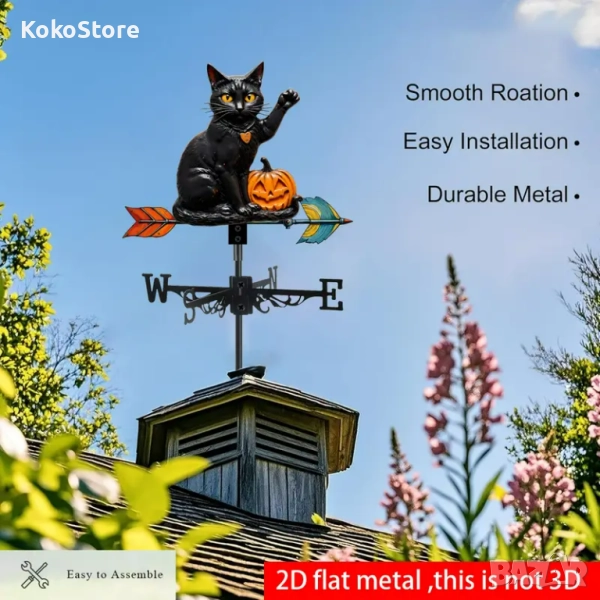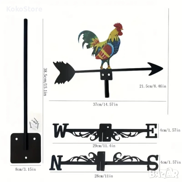 - издръжлив на метеорологични условия и служи не само за посочване посоката на вятъра, но и като градинска декорация за балконът или градината Ви.
