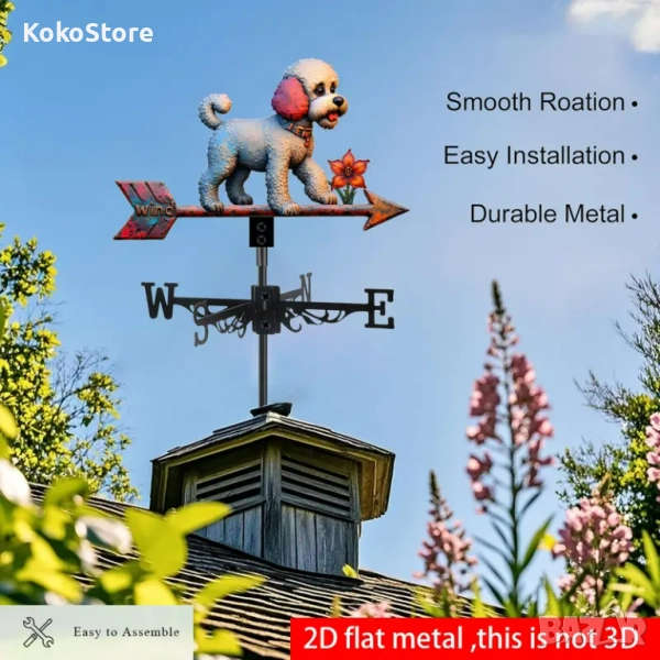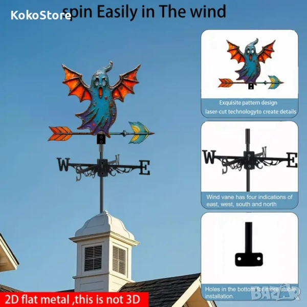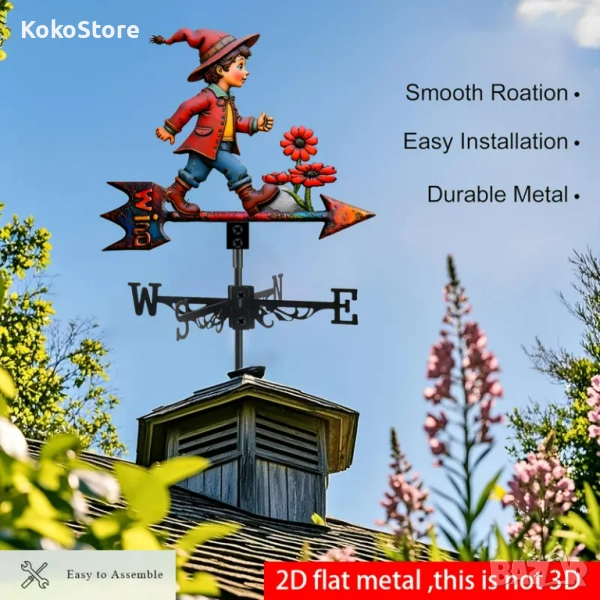 - издръжлив на метеорологични условия и служи не само за посочване посоката на вятъра, но и като градинска декорация за балконът или градината Ви.