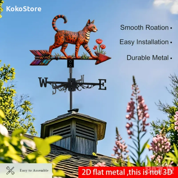 - издръжлив на метеорологични условия и служи не само за посочване посоката на вятъра, но и като градинска декорация за балконът или градината Ви.