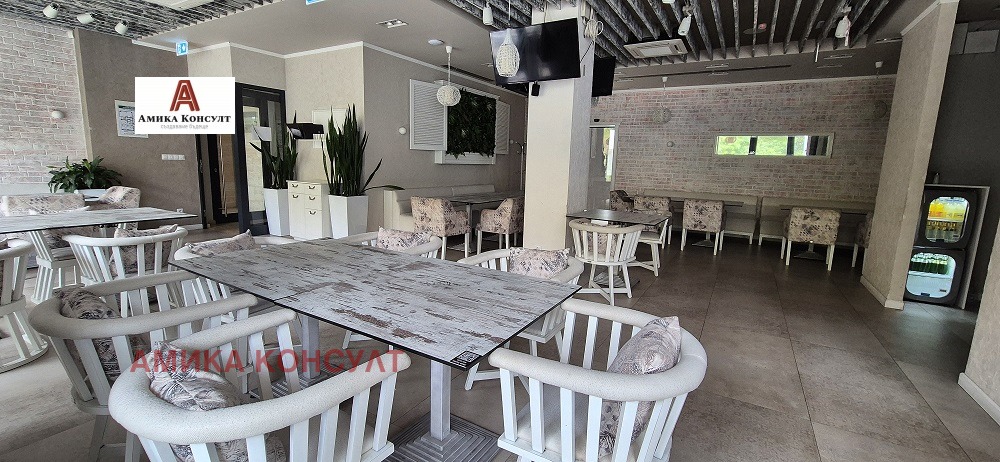 Предлагаме на Вашето внимание нашата най добра оферта за напълно оборудвано, и климатизирано работещо заведение с всички необходими разрешителни- категоризация находящо се в самостоятелна офис сграда!!! Заведението е разположено на три нива, като има следното разпределение: Сутерен-напълно оборудвана кухня със всичко необходимо за работа, складови помещения, офис, 3бр.санитарен възел, Vip зала за частни мероприятия разполагаща с 20 бр. седящи места, стълбище, асасньор, авариен изход, техническо помещение. 1-Ви етаж на кота 0,00 метра-партер: Основна зала със зимна градина разполагаща с около 100 бр. седящи места, санитарен възел, авариен изход, стълбище, асансьор, вход за зареждане, лятна градина разполагаща с около 110 бр. седящи места: 2-ри етаж: Основна зала с около 50бр.седящи места, авариен изход, стълбище, асансьор, Детски клуб, 4бр. санитарни помещения, балкон, тоалетна за инвалиди. Заведението материализира визията за модерно градско луксозно изпълнение, функционалност и удобство, спокойствие и сигурност, зелена околна среда и комуникативно местоположение с 24 часово видеонаблюдение !!! Огледи с предварителна уговорка и подписване на протокол за оглед !!!
