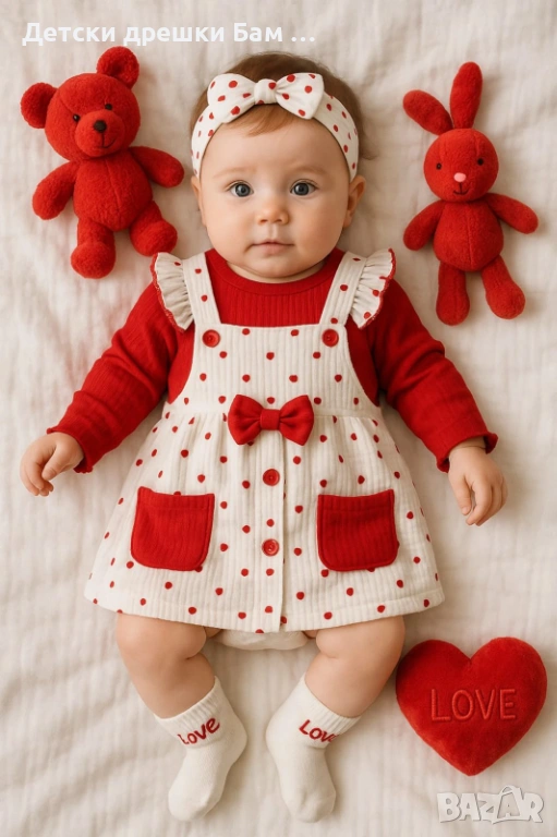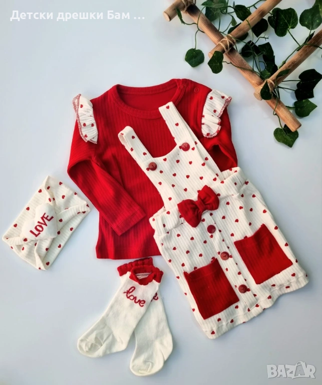 Подарете стил и нежност с този изключително сладък комплект за момиченце, вдъхновен от любовта и детската усмивка!