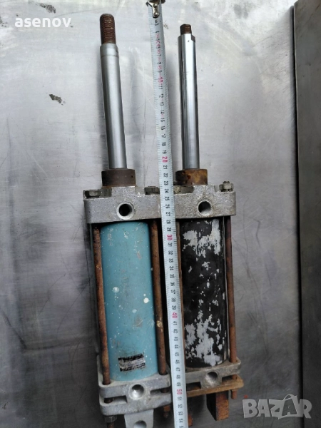 продавам пневматични цилиндри - дължина 40 см; ход 15 см; диаметър 9 см; стежен 25 мм