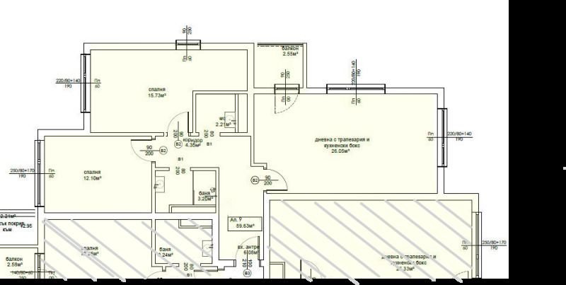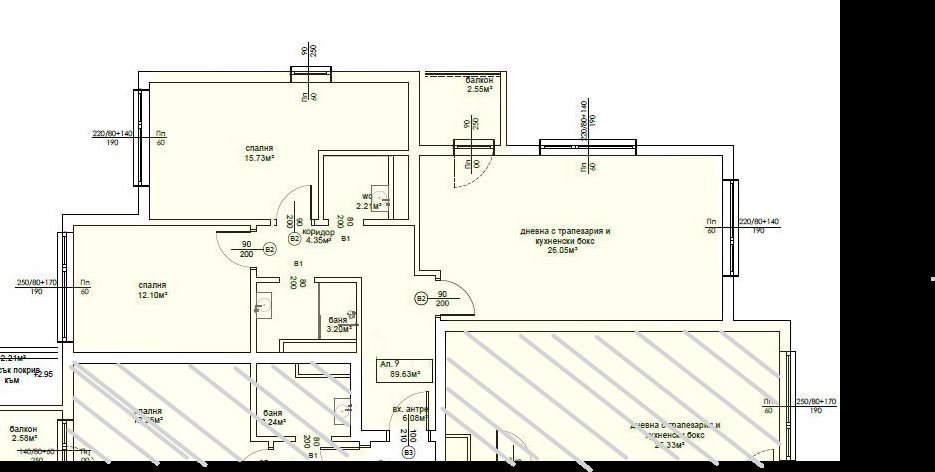 Апартаментът е разположен на втори жилищен етаж от шест етажа и разполага с площ от 102 кв.м. , от които 94 кв.м. - застроена площ. Разпределението както следва е : антре, дневна с трапезария и кухненски бокс, две спални, баня с тоалетна, тераса. Изложението е запад. Отоплението е на ТЕЦ. Сградата е на етап АКТ 14 и ще бъде завършена края на 2027г. Жилището се предлага на шпакловка и замазка, предоставяйки възможност за персонализация на интериора. Предоставя идеалната възможност за новите собственици да създадат своя уютен и стилен дом в един от най-желаните райони на градa. В сградата предлагаме няколко апартамента с различна квадратура ,етаж и цена.