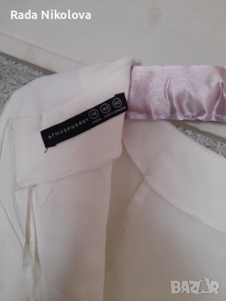 Къса бяла рокля марка Atmosphere която може да се носи със всякакви обувки.Роклята е носена и има проблем със закопчаването на зипъ.