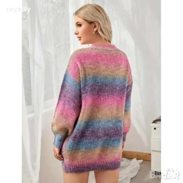 дамски блузон с обло деколте и десен в цветовете на дъгата