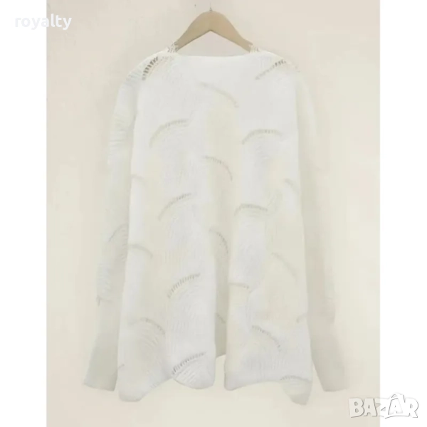 дамски свободен блузон от фино плетиво с ажурна плетка