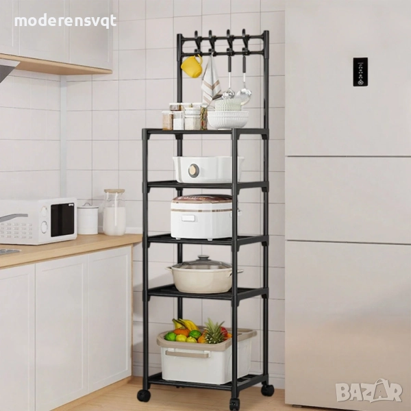 Етажерка с колела и куки на 5 нива за баня и кухня