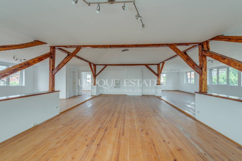 Unique Estates представя на вашето внимание офис под наем, разположен на последен етаж в аристократична, напълно реновирана къща от 1915 г., в коята се намират на 4 етажа отделни и напълно самостоятелни офиси, обляни в много светлина.
