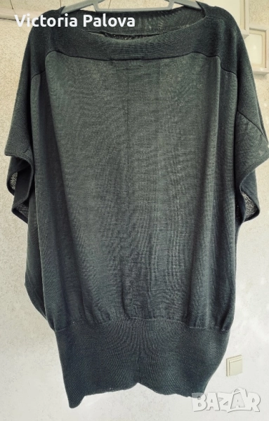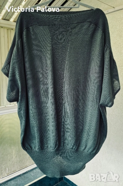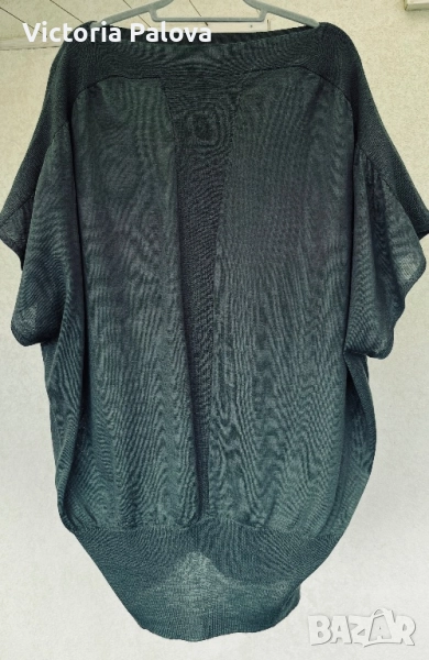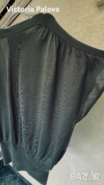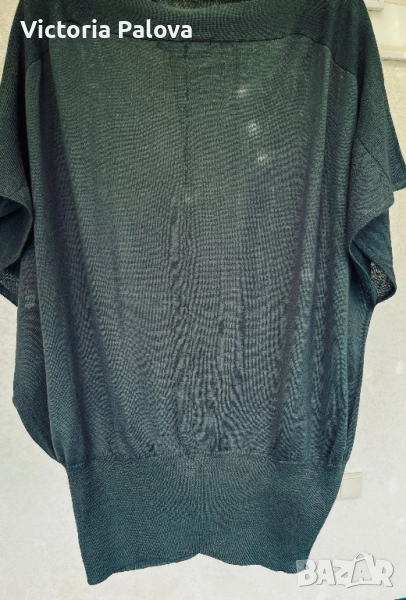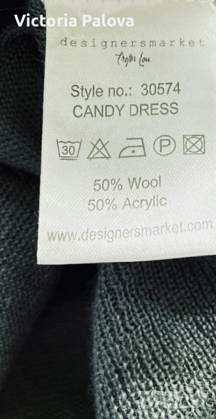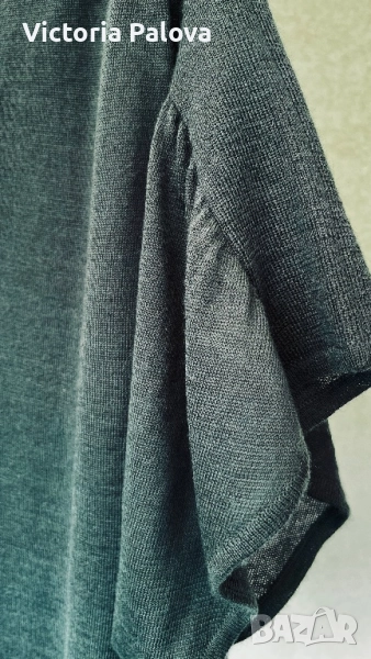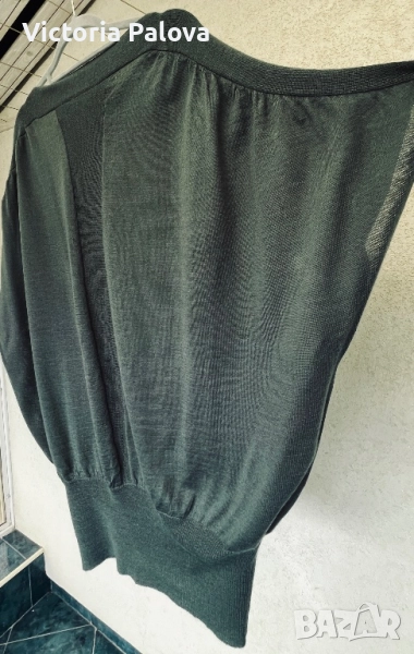 Уникална блуза- рокля ( Candy Dress) в сивозелен цвят, подобен на мъхеста гора след дъжд, от престижната марка Designermarket . Изработена е от луксозна смес 50% вълна и 50% акрил, тази блуза ( рокля) е като топла прегръдка в студените есенни и зимни дни, с впечатляващ батвинг ръкав и свободна елегантна кройка, тя създава изискан силует, подходящ както за casual, така и за полуофициални поводи. Рамо - 98см, ГО - 88см, дължина - 85см.