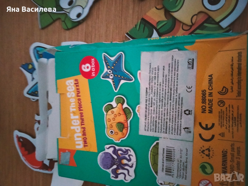 Пъзел , 6 бр. с морски животни - в добро състояние, кутията е деформирана - 4лв.