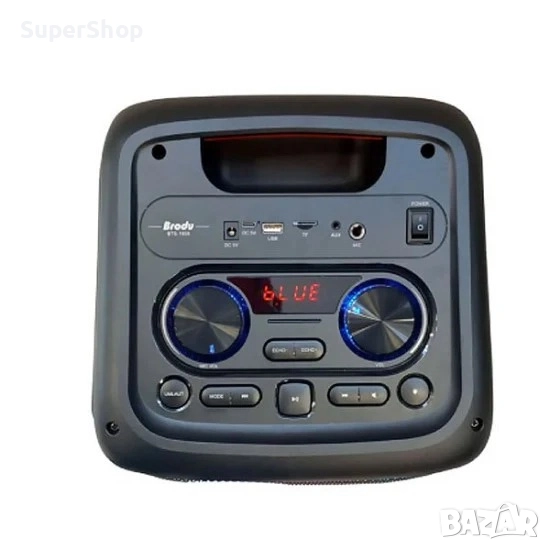 караоке тонколона BTS-1908 с два говорителя и два микрофона е стилна караоке тонколона, която е снабдена с 2 безжични микрофона, дистанционно управление, за по-голямо удобство, безжично свързване с Bluetooth, TWS функция, USB слот, слот за Micro SD карта, AUX вход, 6.5мм вход за жичен микрофон и не на последно място LED светлини. Уреда е много подходящ за всякакви мероприятия навън, вътре, на детски рожденни дни, презентации, улични музиканти, пикници и всяко място на което се изисква музика и забавление. Това би бил един страхотен подарък както за вас, така и за ваш близък.