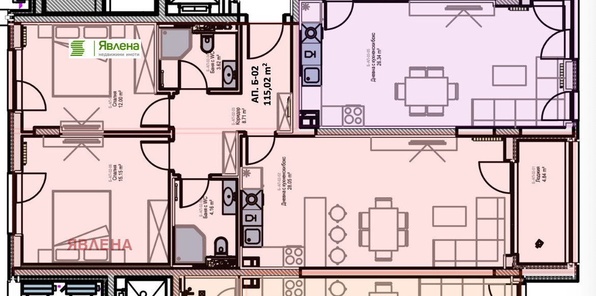 Апартаментът се намира на 2-ри етаж и има следното разпределение: входно антре, южна всекидневна с кухненски бокс, 2 спални, 2 санитарни помещения и балкон. В сградата има и други апартаменти на различни етажи - 2-стайни, 3-стайни и 4-стайни, както и 1 пентхаус на последен етаж. Има опция за покупка на паркоместа.
