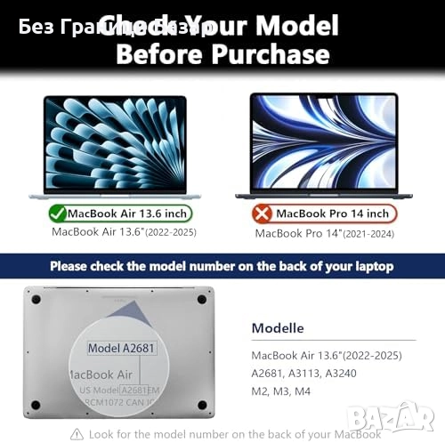Съвместим с MacBook Air 13.6” (2022–2025, M2/M3/M4) и 13” (2018–2021, M1)