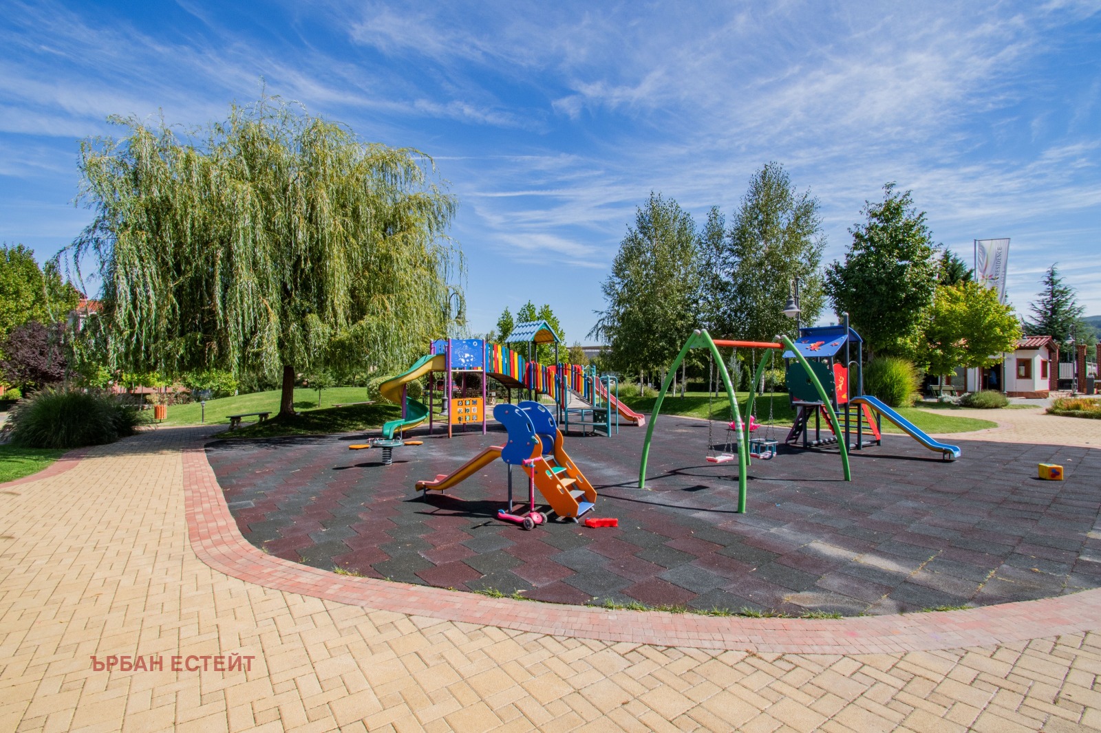-Разнообразни удобства: детски площадки, алеи за разходка, тенис корт, баскетболно игрище, фитнес на открито, парк за домашни любимци, параклис;