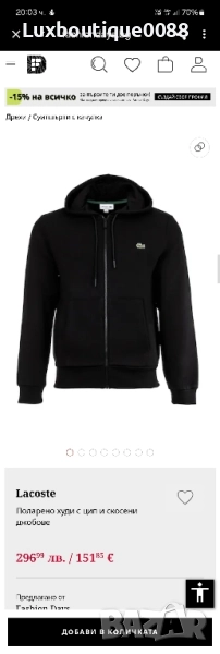 Чисто нов без етикет суичър Lacoste