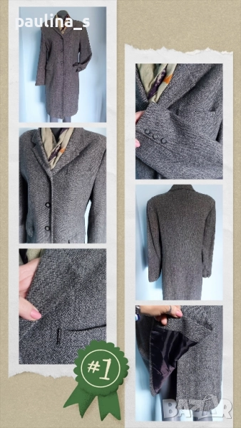 1️⃣. Колаж / L / XL - "Naf-Naf". Цената е крайна, без пазарлъци 89,99лв / 45 евро. Марково манто от 84% вълна, полиамид и ликра. Моделът е обран, втален и с издължен силует, джобове с капаци и цепка отзад. Качество гарантирано от бранда. Като ново е, без дефекти и етикет.