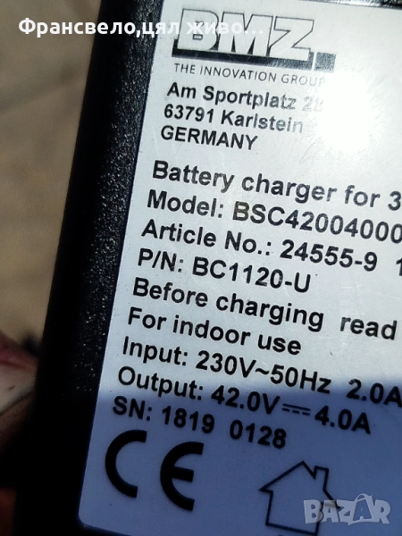Зарядно за електрически велосипед колело → Обява 52158953