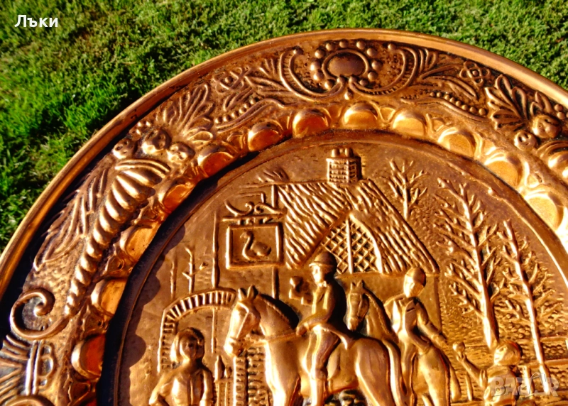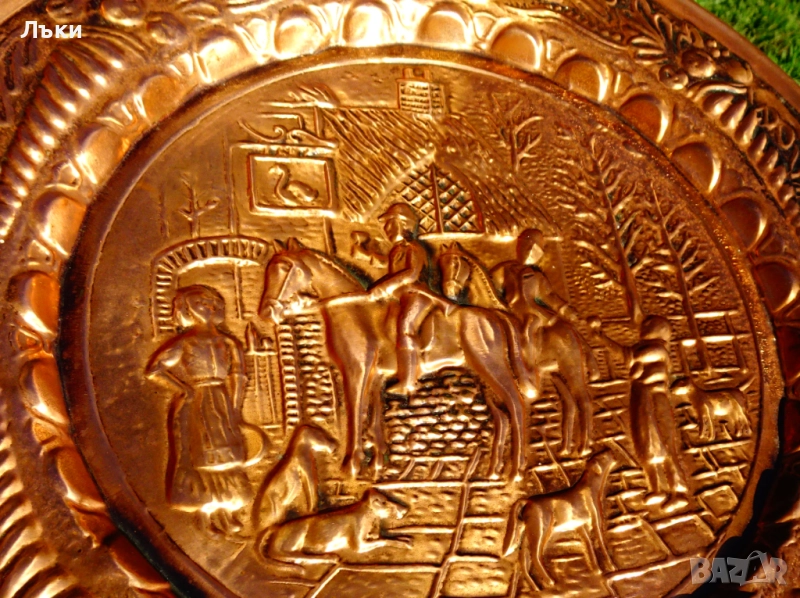 чиста мед с релефна ловна картина - ловци,ездачи,коне,кучета,които тръгват на