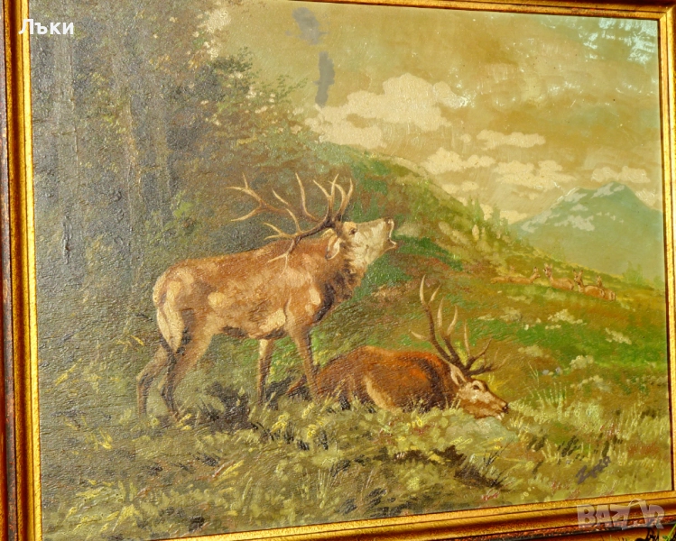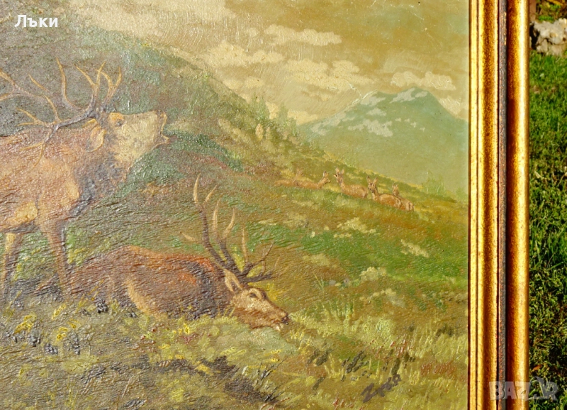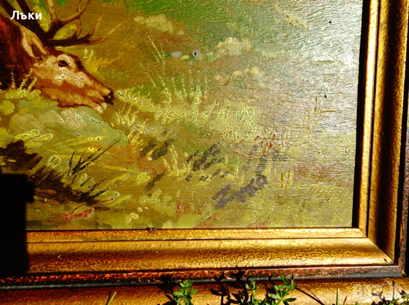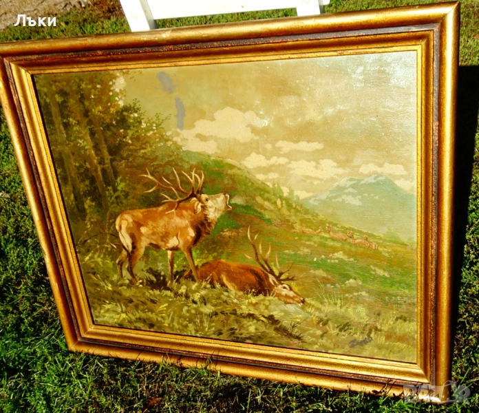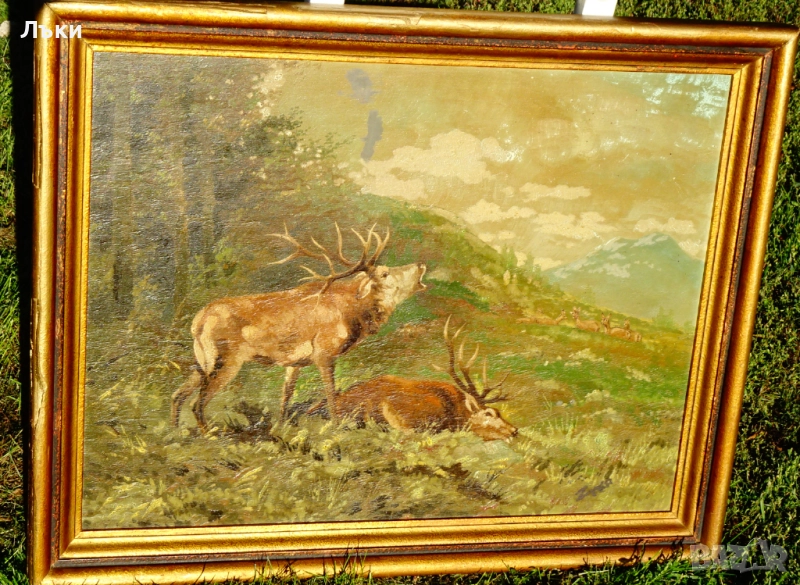 естествено дърво с рамка.Изобразен и Елен в любовен период,който с рев