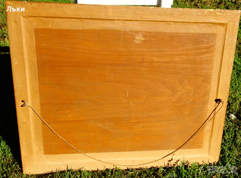 подписана от художника.Има рамка от естествено дърво.Размер 68 х 55 х 5 см.