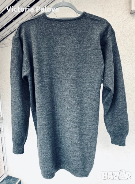 мерино вълна, осигуряваща изключителна мекота и комфорт. Мерино вълната е известна със своите терморегулиращи свойства, поддържащи оптимална температура на тялото през цялото време. Тънките влакна ( 19,5 микрона) придават на пуловера лекота и еластичност,което го прави идеален за носене през всички сезони. Сив, класически и лесен за комбиниране с различни стилове и цветове, подходящ както за мъже така и за жени с елегантен и съвременен силует. Рамо - 50см, ГО - 55см, дължина - 75см, ръкав - 57см.